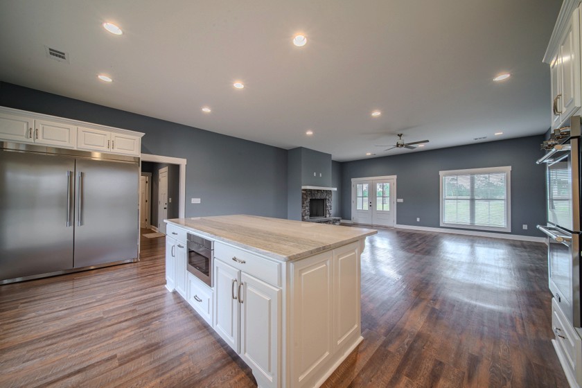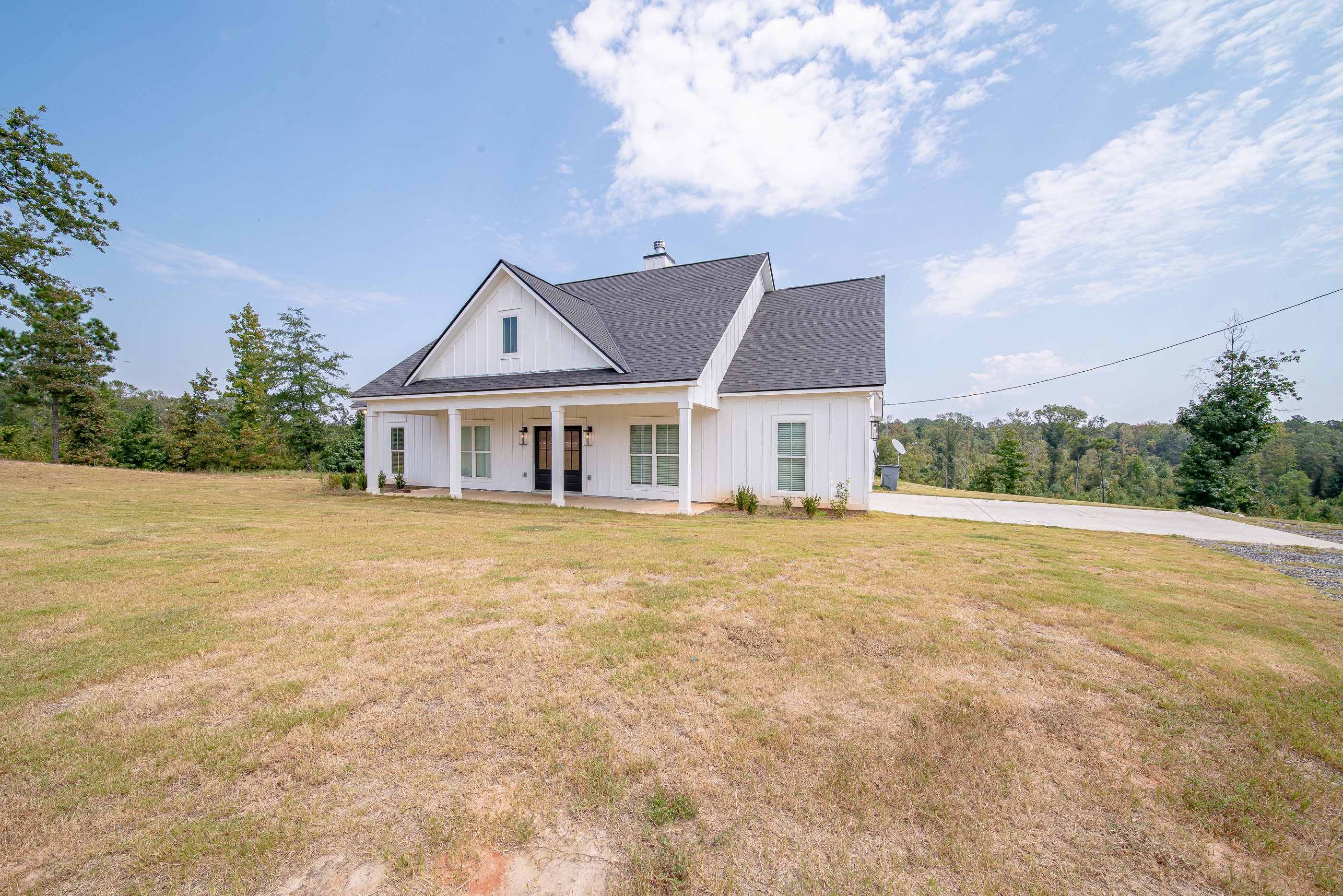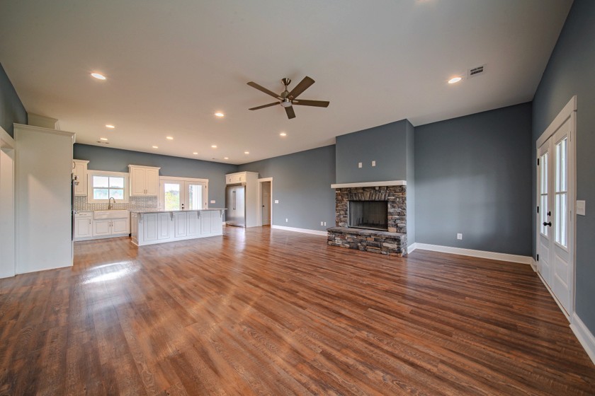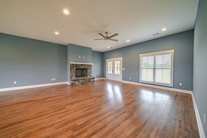 Welcome to Hurtsboro, AL! This 1-year-old home sits on 3.77 acres, offering seclusion, privacy, and modern comfort. The inviting front porch opens into a spacious open-concept family room featuring LVP flooring and a wood-burning fireplace with stone surround and hearth. The kitchen is gorgeous with a large eat-at island, marble countertops, farm sink, pot filler, walk-in pantry, and a full suite of stainless-steel appliances including double ovens and a professional series refrigerator and freezer. The primary suite, tucked at the rear of the home, boasts an ensuite bath with dual vanities, a tile shower, soaking tub, and an oversized walk-in closet that conveniently connects to the laundry room. The split floor plan adds privacy with two additional bedrooms, each with walk-in closets, connected by a Jack-and-Jill bath featuring separate vanities. Outdoor living is easy with a covered back porch with ceiling fan overlooking the private acreage. A 2-car side-entry garage adds convenience, while a 40x24 wired and plumbed metal shop with four roll-up bays is perfect for hobbies, storage, or workspace. For those seeking even more room to play, an additional 39.23 acres are available for purchase.